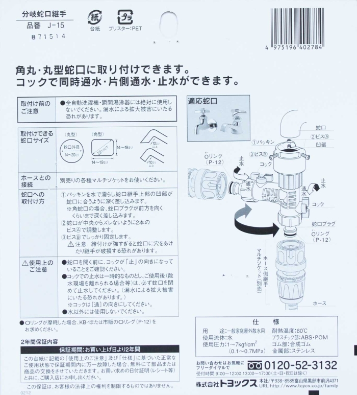 ECJOY!では 分岐蛇口継手 J-15 をはじめ、その他商品も取り揃えておりますので、あわせてご利用ください。