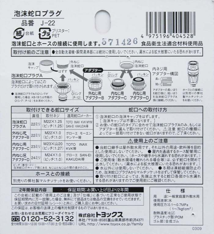 TOYOX TOYOX 泡沫蛇口プラグ J-22