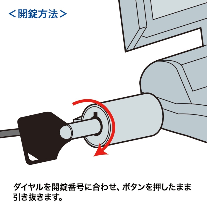 [サンワサプライ][防犯・防災用品]ワイヤーが360度あらゆる方向に可動するセキュリティスロットに簡単取付けタイプのセキュリティワイヤー。 ◆ ワイヤーは360度あらゆる方向に可動します。錠とワイヤーが一体型なので、取付け後、邪魔になりません。移動が多い方に最適な着脱簡単タイプです。取付けの際、緩みが生じる場合は、付属のスペーサー(3サイズ)を使用して、しっかり取付けが出来ます。