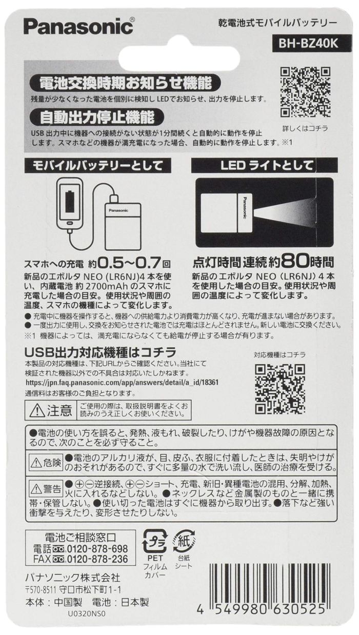 PANASONIC パナソニック LEDライト搭載 乾電池式モバイルバッテリー BH-BZ40K