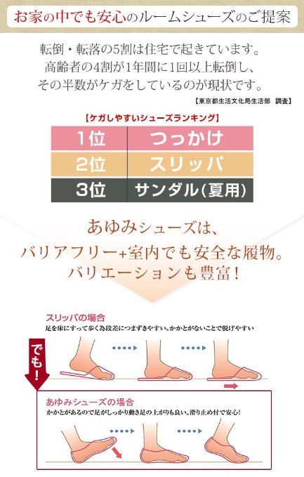 ・使用状況、条件等により、耐久性、摩耗性に個人差が生じる場合がありますので、ご了承ください。(例:すり足歩行など)